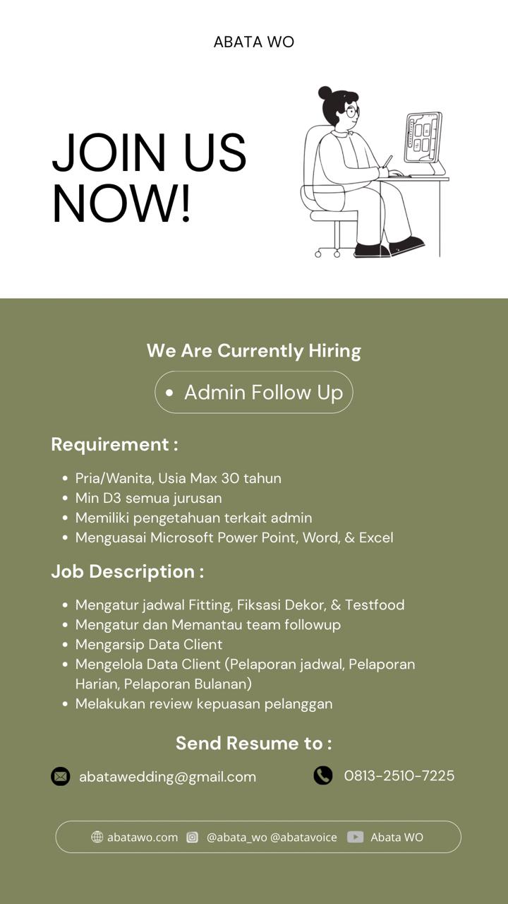 Lowongan Admin Office Follow Up Abata WO Januari 2026